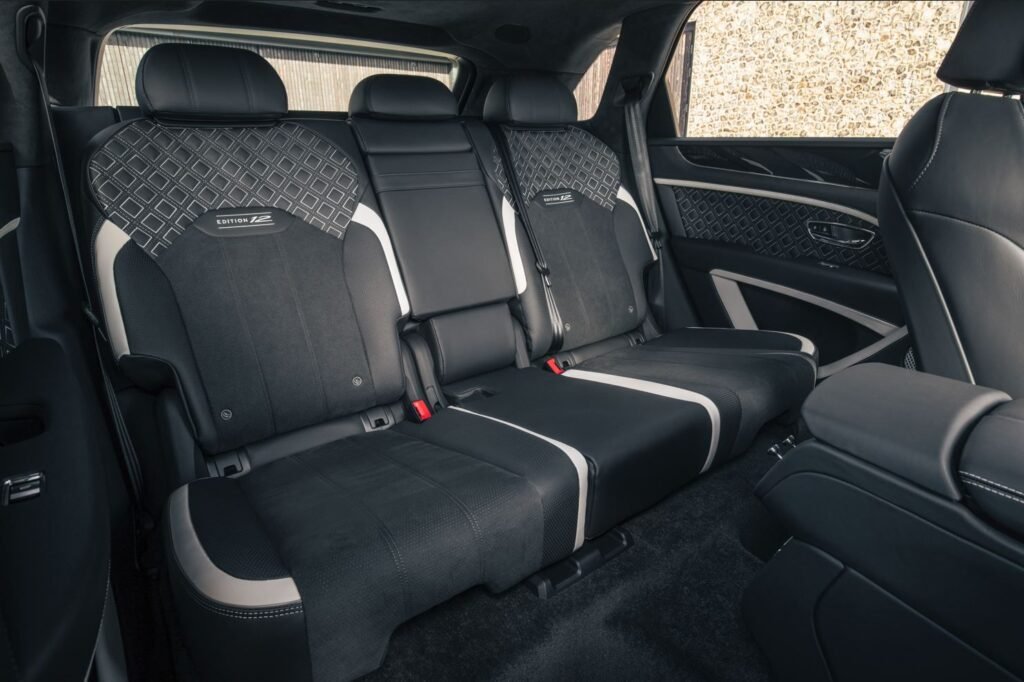 The interior of the Speed Edition 12 is adorned with Edition 12 embroidery and color graduated seat contrast stitching, adding a touch of bespoke luxury. The fascia in Grand Black veneer showcases the engine’s firing sequence etched alongside an inlaid Edition 12 badge, further emphasizing the engineering excellence and craftsmanship of Bentley vehicles.